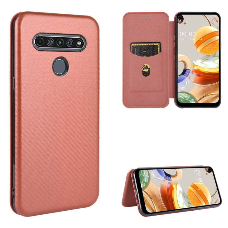 Funda Cuero para LG K40S con Tapa Magnética Horizontal Textura Fibra de Carbono (Marrón)