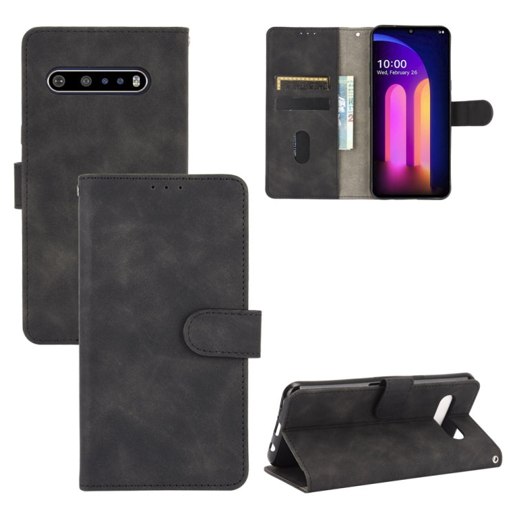 Funda de Cuero para LG V60 Thinq 5G Flip Horizontal con Hebilla Magnética y Ranuras para Tarjetas (Negro)