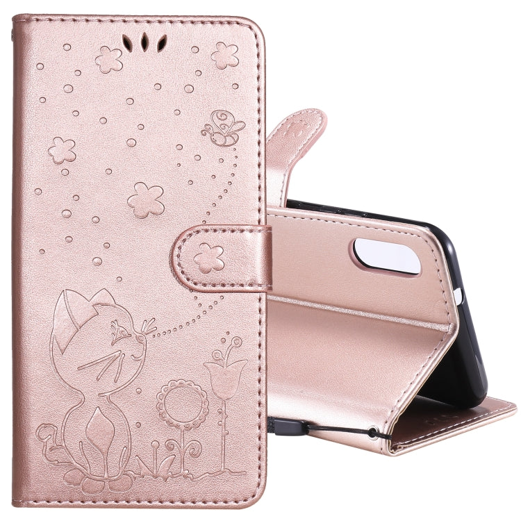 Funda de Cuero para LG K22 y K22 Plus CAT Bee con Tapa Horizontal, Soporte, Ranuras y Billetera (Oro Rosa)
