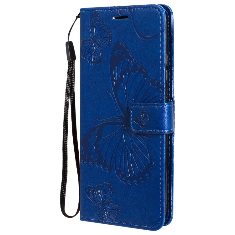 Funda de cuero horizontal para LG K22 y K22 Plus con relieve 3D mariposas, tarjetero y billetera (Azul)