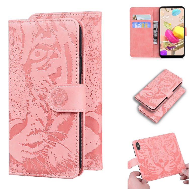 Funda LG K42 Cuero con patrón Tiger, tapa horizontal, tarjetero y billetera (Rosa)