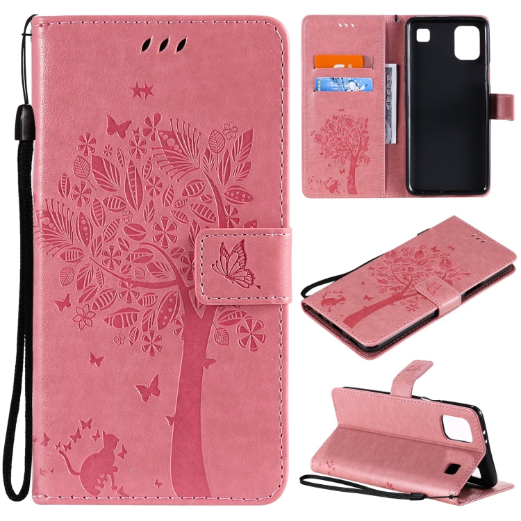 Funda de Cuero PU para LG K42 con Patrón Árbol y Gato, Flip Horizontal, Soporte, Billetera y Cordón (Rosa)