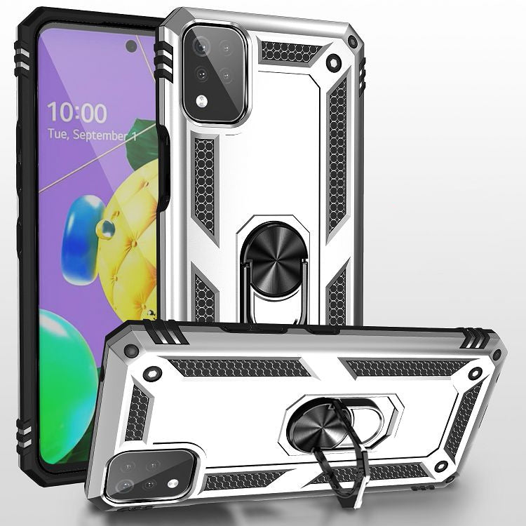 Funda Protectora para LG K53 TPU + PC con Soporte Giratorio 360° (Plata)