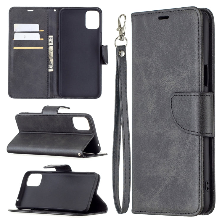 Funda de Cuero PU para LG K42 con Textura Retro Cordero, Soporte, Ranuras y Lanyard (Negro)