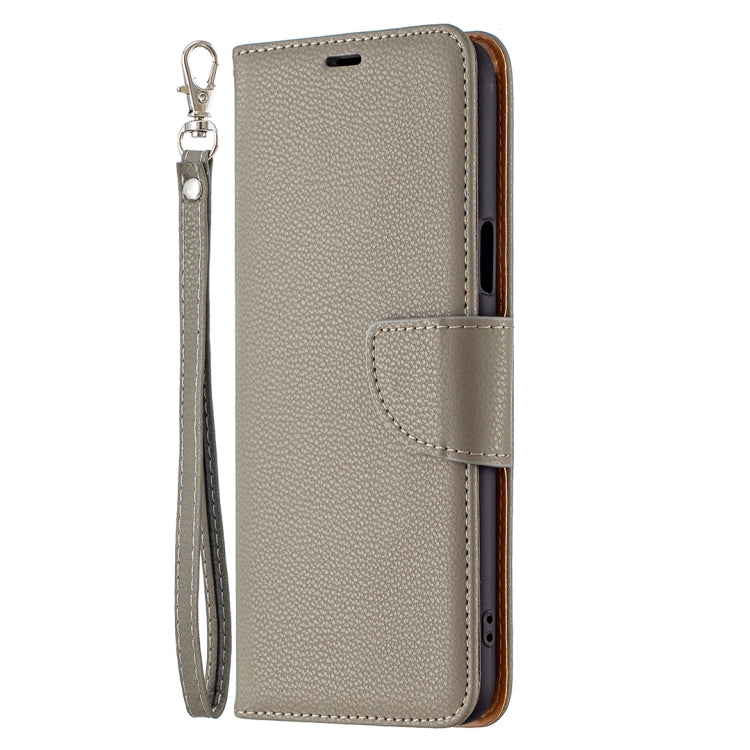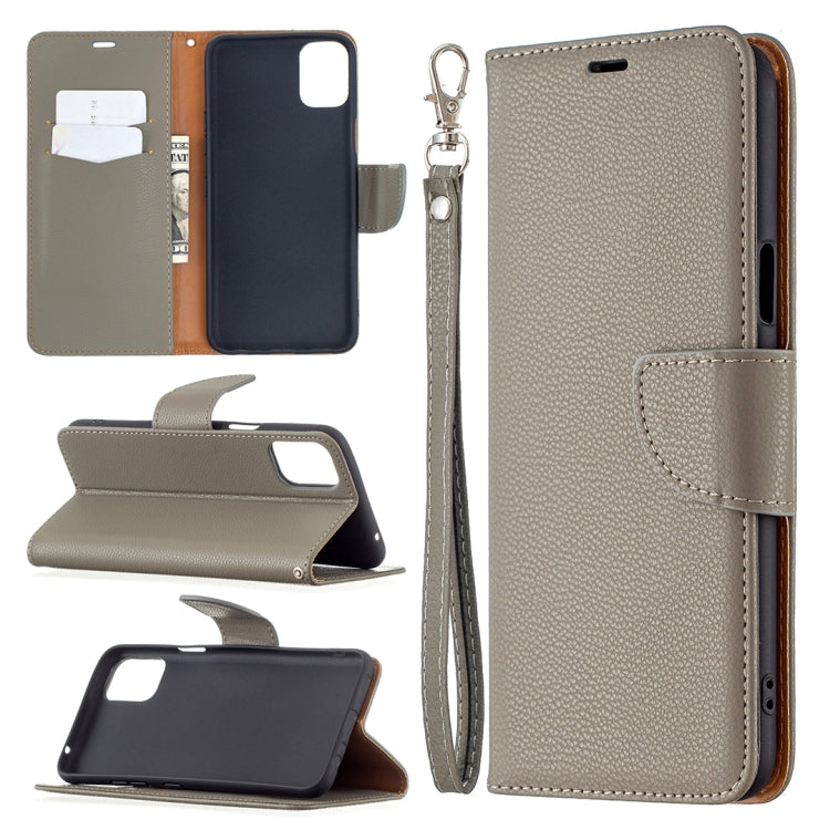 Funda Horizontal Flip LG K42 Litchi Texture con Soporte Ranuras Tarjetas Billetera Cordón (Gris)