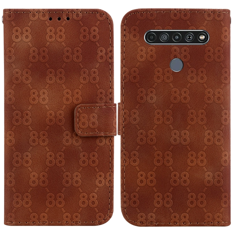 Estuche para Teléfono LG K61 Cuero En Relieve Doble Forma de 8 (Marrón)