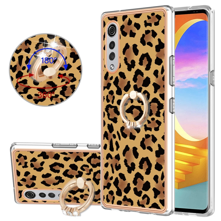 Funda para LG Velvet 5G / 4G / G9 Velvet Galvanoplastia Doble Cara con Soporte Anillo (Leopardo)