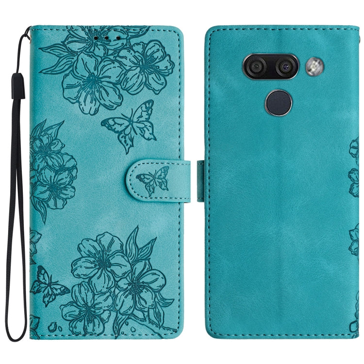 Funda para LG K50 Cherry Blossom Butterfly Skin Feel de PU en Relieve (Azul)