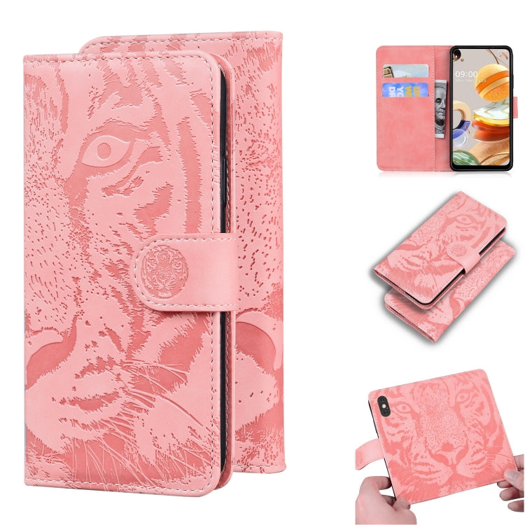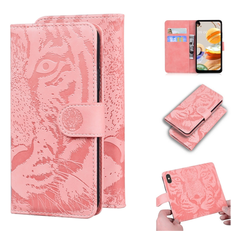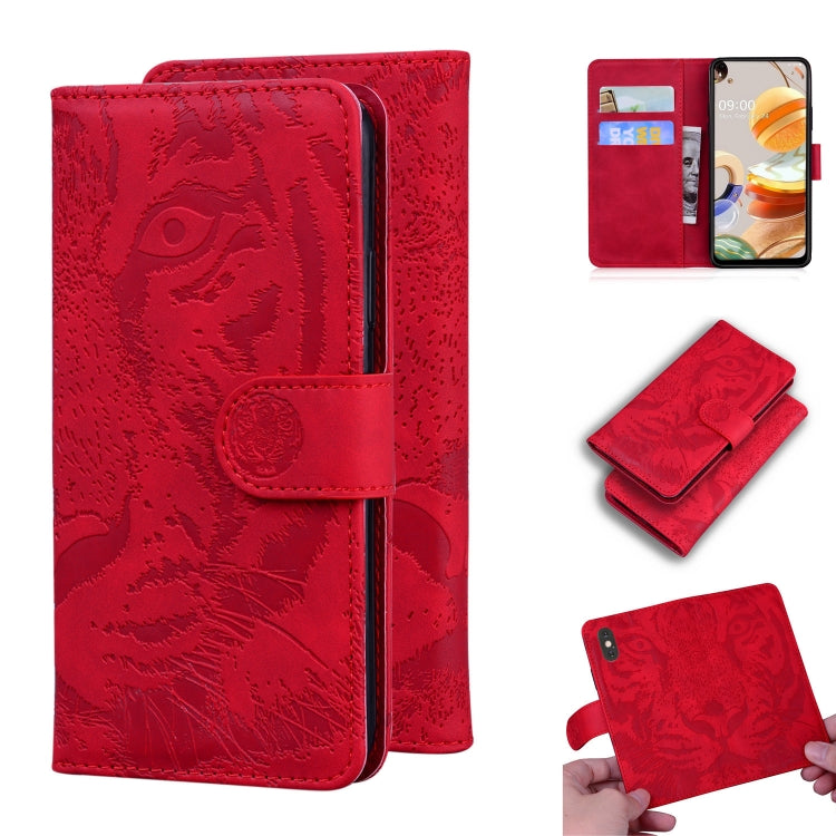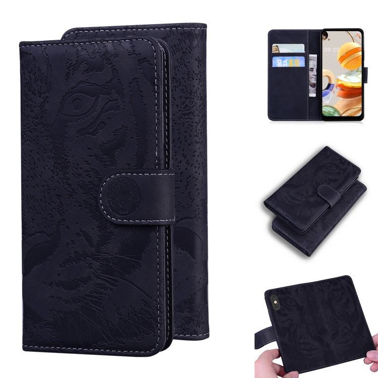 Funda de Cuero LG K61 Tiger Embossing con Tapa Horizontal, Soporte, Ranuras y Billetera (Negro)