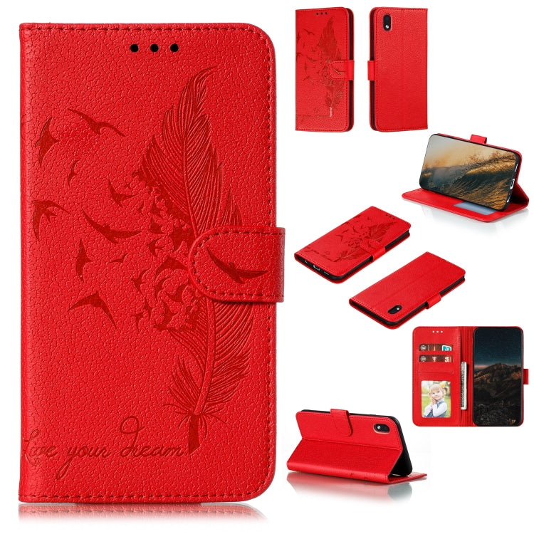 Funda de Cuero para LG K41S / K51S con Patrón de Plumas, Tapa Horizontal, Billetera y Soporte (Rojo)