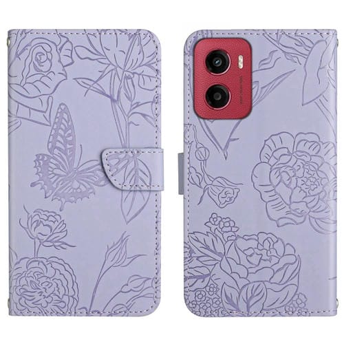 Funda de Cuero con Tapa y Mariposas en Relieve para Motorola Moto G05 Ht03 (Morado)