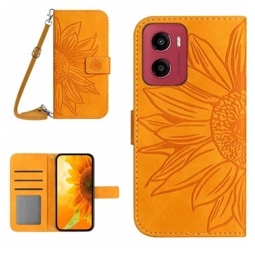 Funda de Cuero con Tapa y Cordón para Motorola Moto G05 Ht04 con Diseño de Girasol (Amarillo)