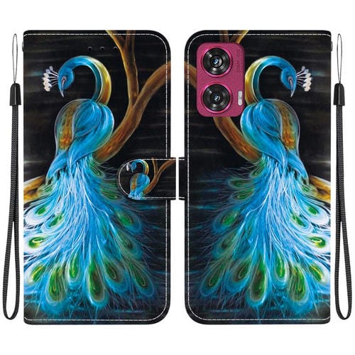 Funda de Cuero Motorola Edge 50 Pro con Dibujo de Colores y Textura de Cristal (Pavo Real)