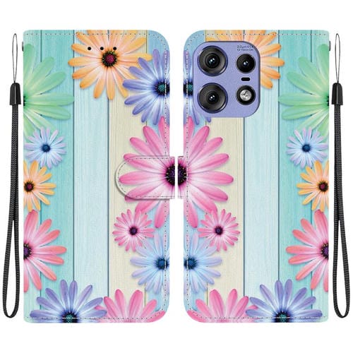 Funda de Cuero Motorola Edge 50 Fusion con Dibujo de Colores y Textura de Cristal (Lotus)