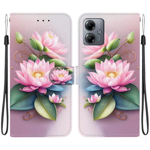 Funda de Cuero Motorola Moto G14 con Dibujo de Colores y Textura de Cristal (Lotus)