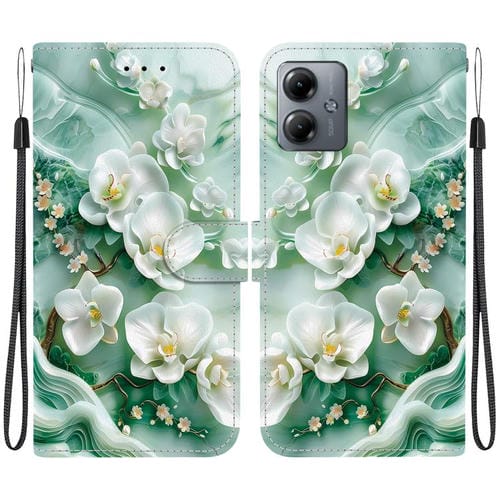 Funda de Cuero Motorola Moto G14 con Dibujo de Colores y Textura de Cristal (Flores de Jade)