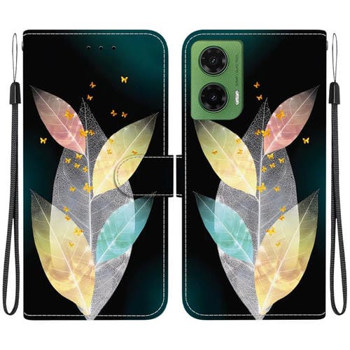 Funda de Cuero para Motorola Moto G35 con Dibujo de Hojas de Colores y Textura de Cristal