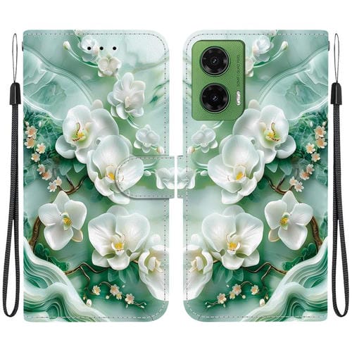 Funda de Cuero para Motorola Moto G75 5G con Dibujo de Colores y Textura de Cristal (Flores de Jade)