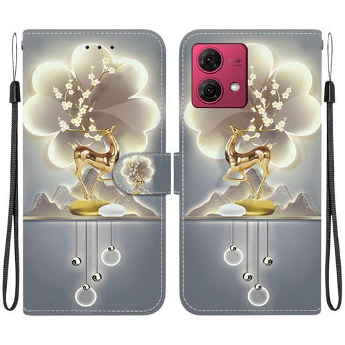 Funda de Cuero para Motorola Edge 50 Fusion con Dibujo de Colores y Textura de Cristal (Ciervo Sika)