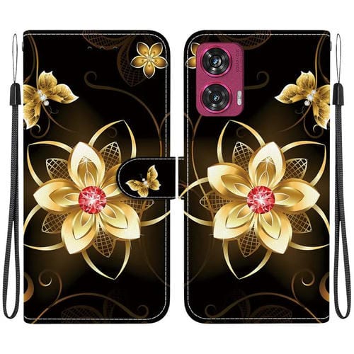 Funda de Cuero con Dibujo y Textura de Cristal para Motorola Edge 40 (Flor Dorada)