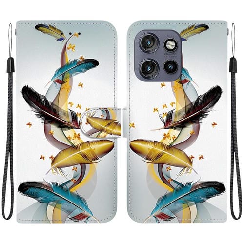 Funda de Cuero con Dibujo y Textura de Cristal para Motorola Edge 50 Fusion (Plumas Doradas)