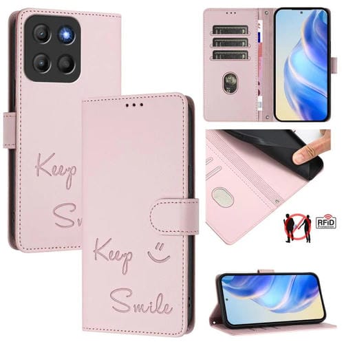 Funda de Cuero Rfid con Relieve Sonriente para Motorola Moto G15 (Rosa)