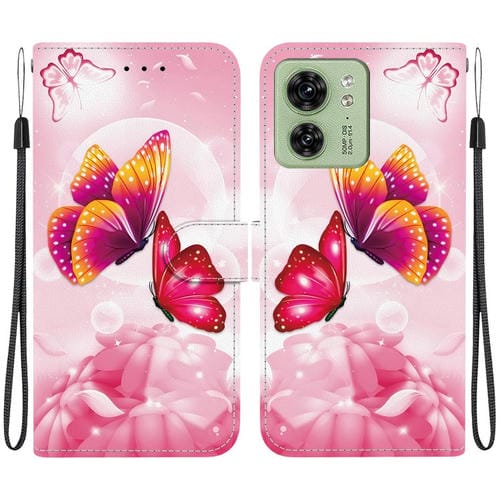 Funda de Cuero para Motorola Edge 40 con Dibujo de Colores y Textura de Cristal (Mariposas Rosas)