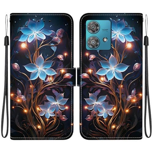 Funda de Cuero con Dibujo y Textura de Cristal para Motorola Edge 40 Neo (Flor de Linterna Pequeña)
