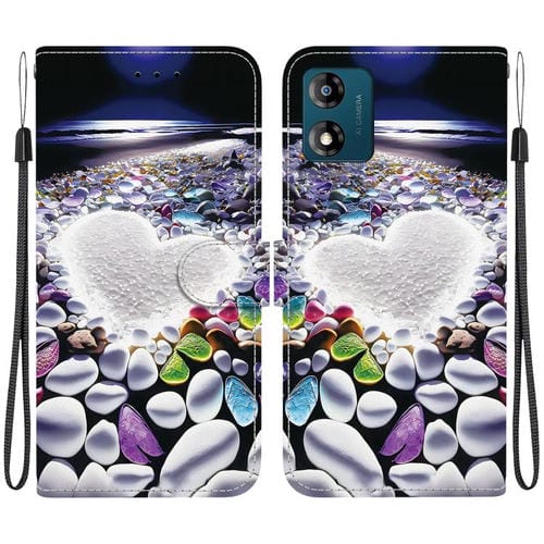 Funda de Cuero Motorola Moto E13 con Dibujo de Colores y Textura de Cristal (Corazón)