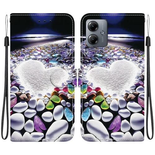 Funda de Cuero Motorola Moto G14 con Dibujo de Colores y Textura de Cristal (Corazón)