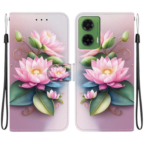 Funda de Cuero Motorola Moto G35 con Dibujo de Colores y Textura de Cristal (Lotus)