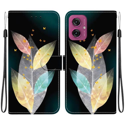 Funda de Cuero con Dibujo y Textura de Cristal para Motorola Moto G55 (Hojas de Colores)