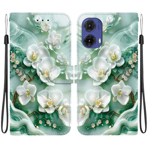 Funda de Cuero con Dibujo y Textura de Cristal para Motorola Edge 40 Neo (Flores de Jade)