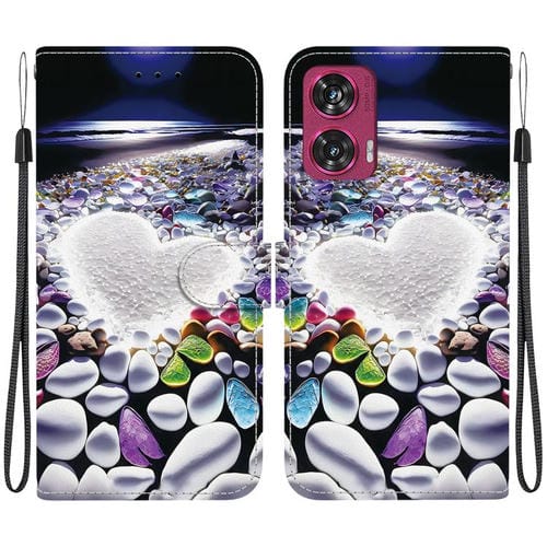 Funda de Cuero con Dibujo Colorido y Textura de Cristal para Motorola Edge 50 Fusion (Corazón)