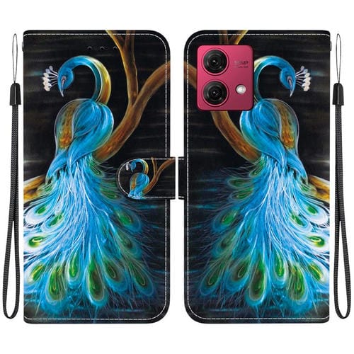 Funda de Cuero Motorola Moto G84 con Dibujo de Colores y Textura de Cristal (Pavo Real)