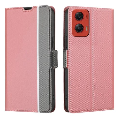 Funda de Cuero con Textura de Sarga y Botones Laterales para Motorola Edge 50 Fusion 5G (Rosa)