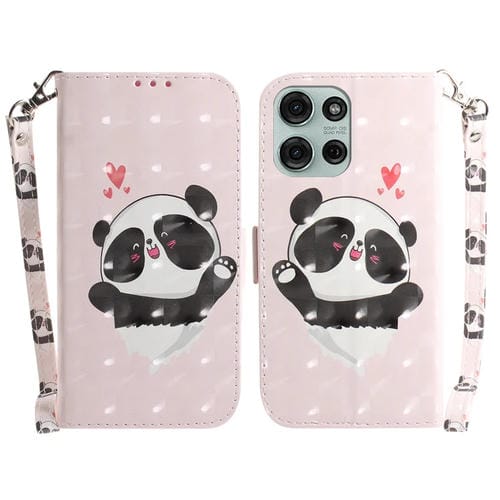 Funda de Cuero con Tapa 3D para Motorola Moto G75 5G (Panda con Forma de Corazón)