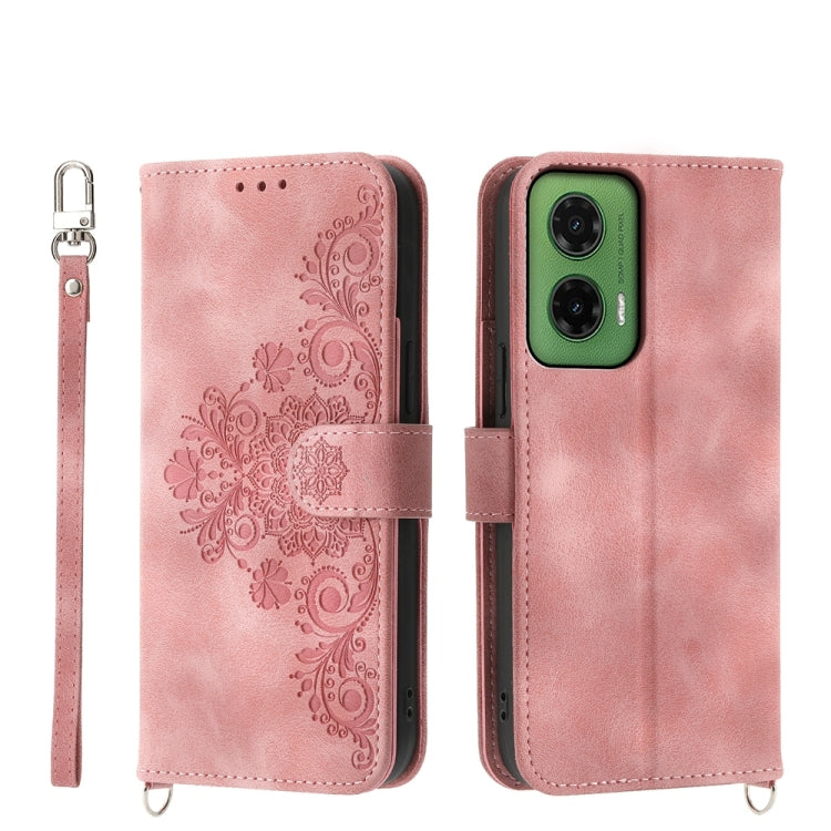 Funda de Cuero Tipo Billetera Motorola Moto G55 con Diseño de Flores en Relieve (Rosa)
