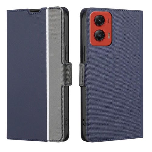 Funda de Cuero con Textura de Sarga y Botones Laterales para Motorola Moto G 5G (2024) (Azul)