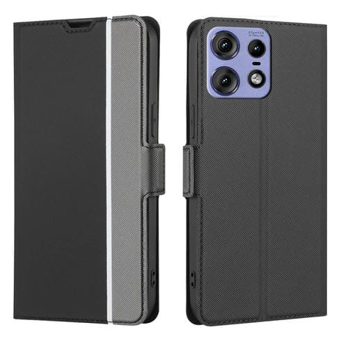 Funda de Cuero con Textura de Sarga y Botones Laterales para Motorola Edge 50 Fusion 5G (Negro)