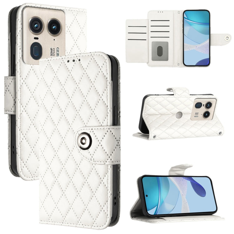Funda de Cuero con Tapa y Cordón para Motorola Edge 50 Fusion Rhombic Texture (Blanco)