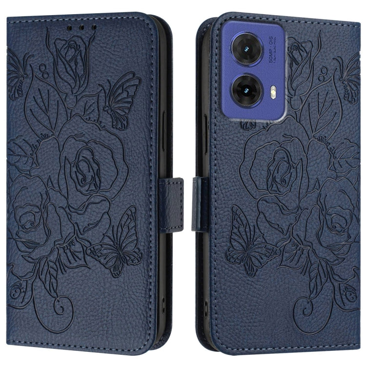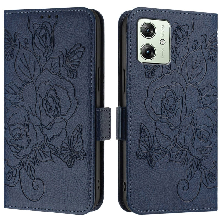 Funda de Cuero Antirrobo RFID para Motorola Moto G54 5G Eu/Brasil con Relieve Rosa (Azul Oscuro)