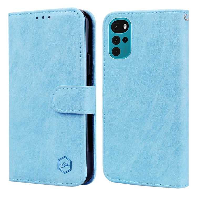 Funda para Motorola Moto G22 Sensación de Piel Textura de Cuero Aceitoso PU + TPU (Azul Claro)