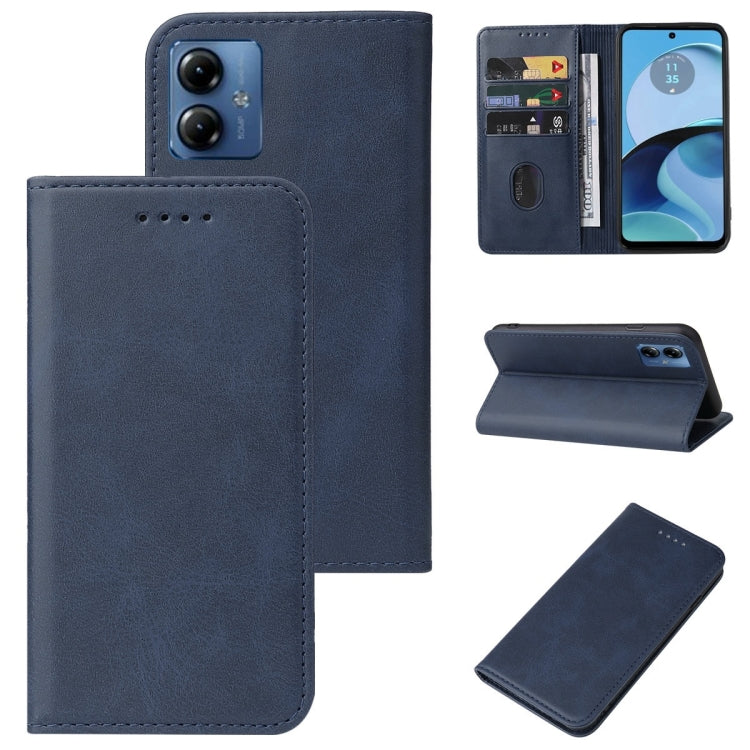 Funda de Cuero para Motorola Moto G14 con Cierre Magnético (Azul)