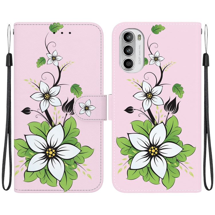Funda de Cuero para Motorola Moto G52J Jp con Dibujo Coloreado y Textura de Cristal (Lirio)