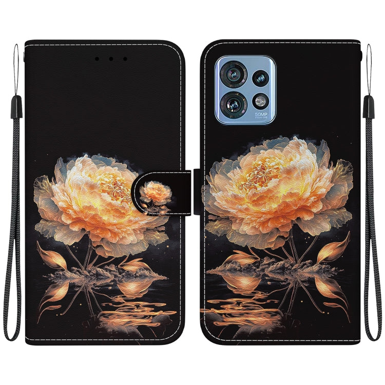 Funda de Cuero para Motorola Edge 40 con Dibujo Coloreado y Textura de Cristal (Peonía Dorada)