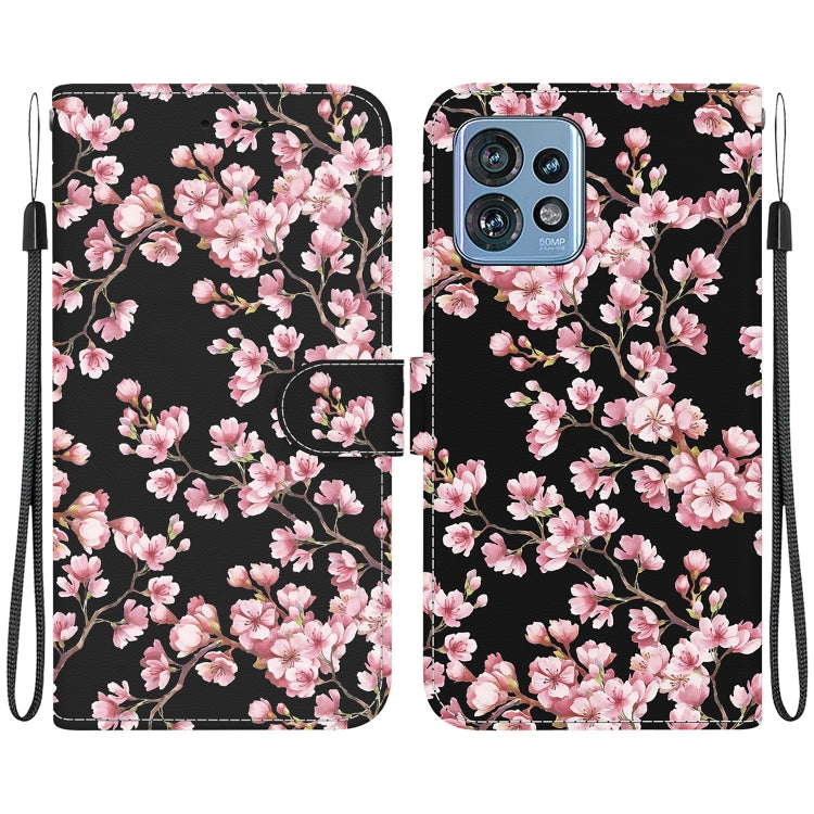 Funda de Cuero para Motorola Edge 40 Pro con Dibujo Coloreado y Textura de Cristal (Flor de Ciruelo)