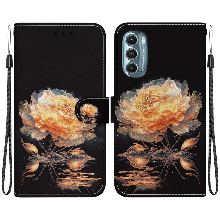Funda de Cuero para Motorola Moto G Stylus 5G 2022 con Dibujo y Textura de Cristal (Peonía Dorada)