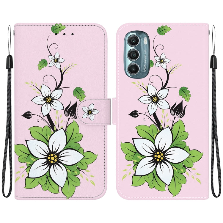 Funda de Cuero para Motorola Moto G Stylus 5G 2022 con Dibujo Coloreado y Textura de Cristal (Lirio)