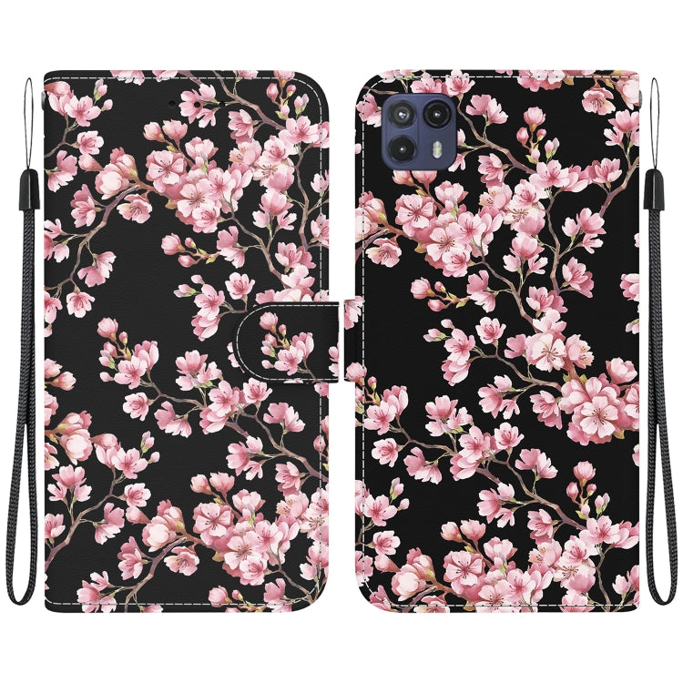 Funda de Cuero para Motorola Moto G50 5G con Dibujo Coloreado y Textura de Cristal (Flor de Ciruelo)